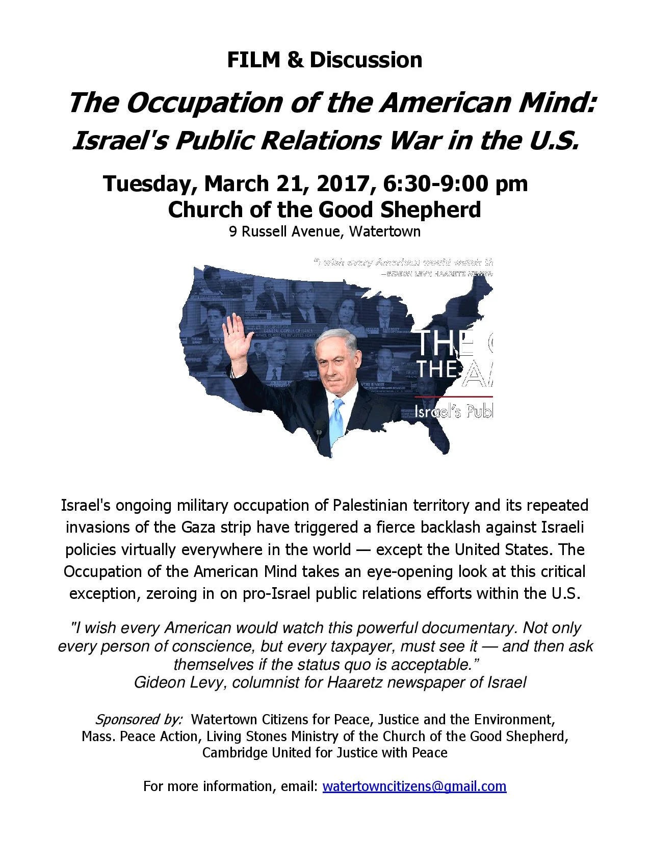 They will be showing the recent documentary "The Occupation of the American Mind"